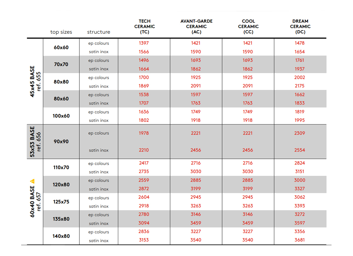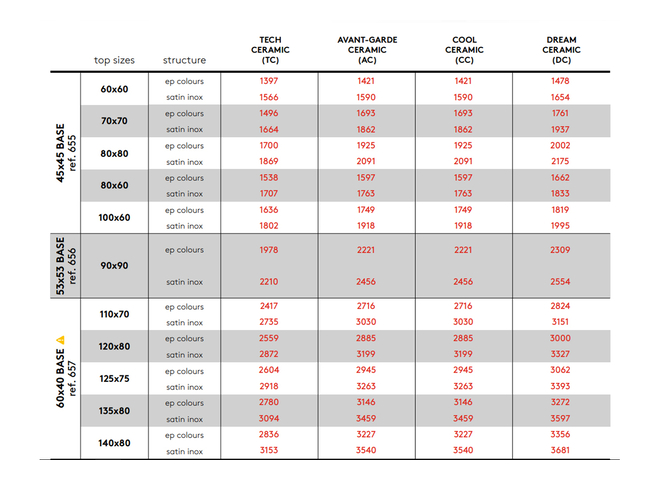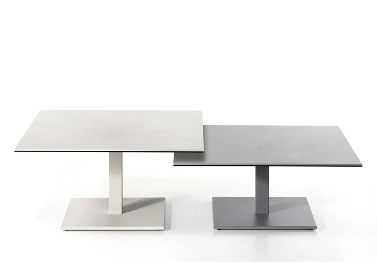 Dado is available in different heights 33, 40 and 55 cm. The table top made of ceramic laminated with glass with more than 25 finishes which simulate cement, rust or marble among many others.