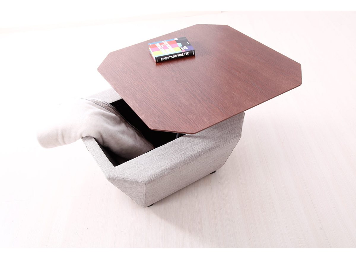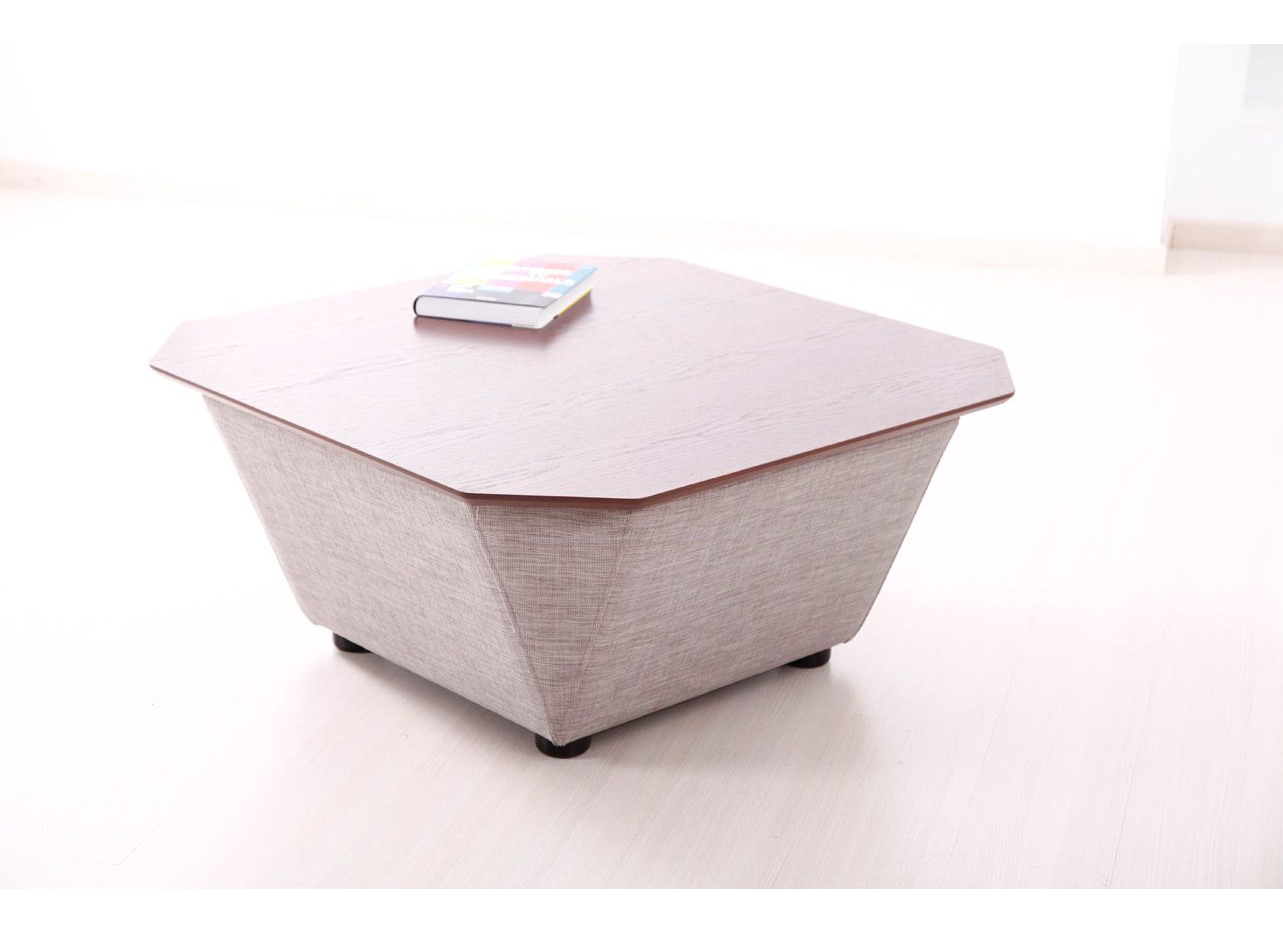 Carol is a trapezium shaped table with an octagonal shape of the wooden top, that's why it perfectly fits the corner groups, especially Calisto. This unique table can be produced in different fabrics and different colors of wood.