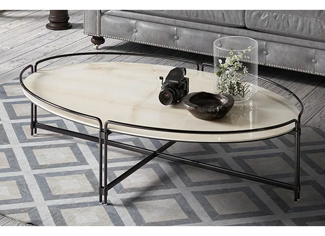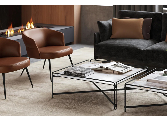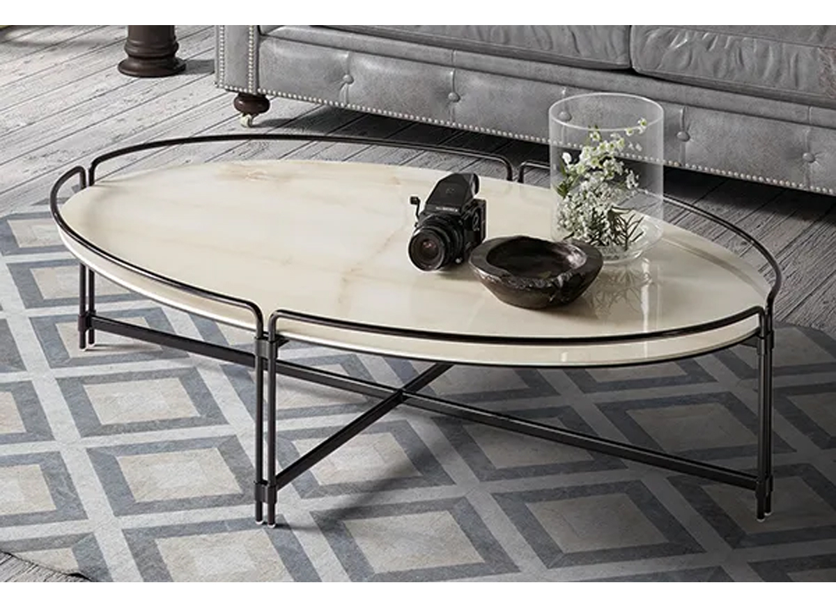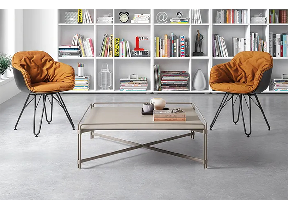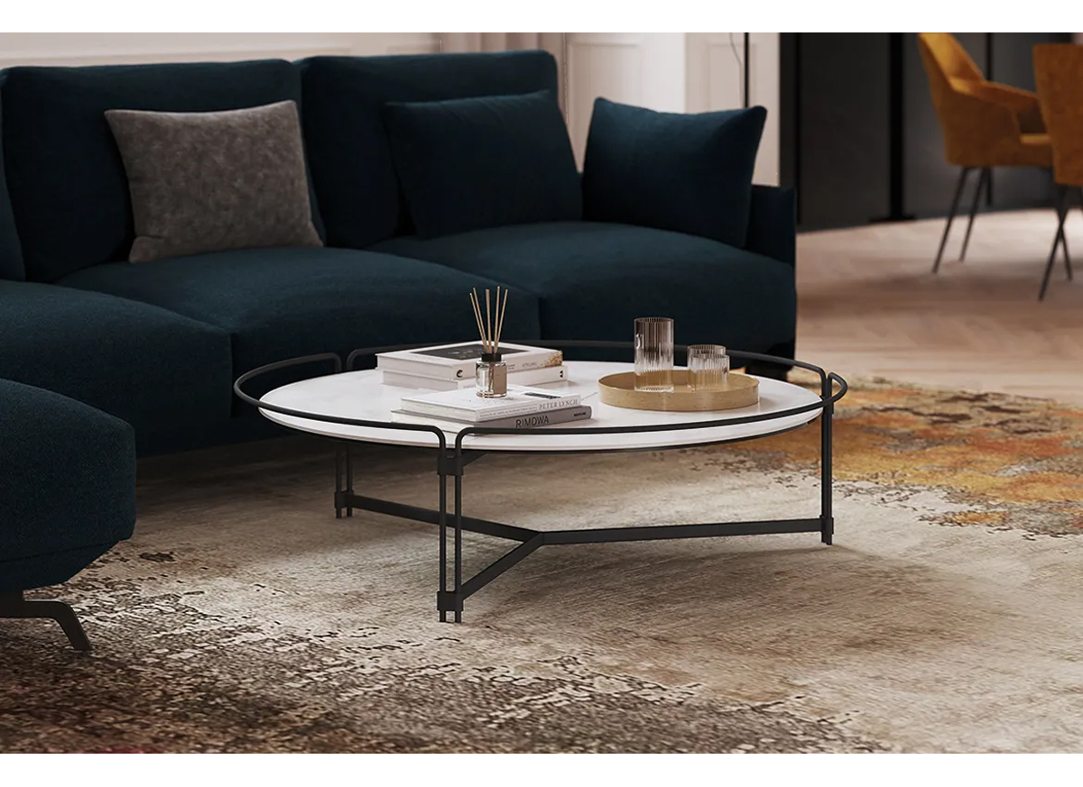 The Join coffee table is made with a ceramic top with a total height of 35 cm. The structure is metallic and is available with square, rectangular, round and oval tops in a variety of finishes.
