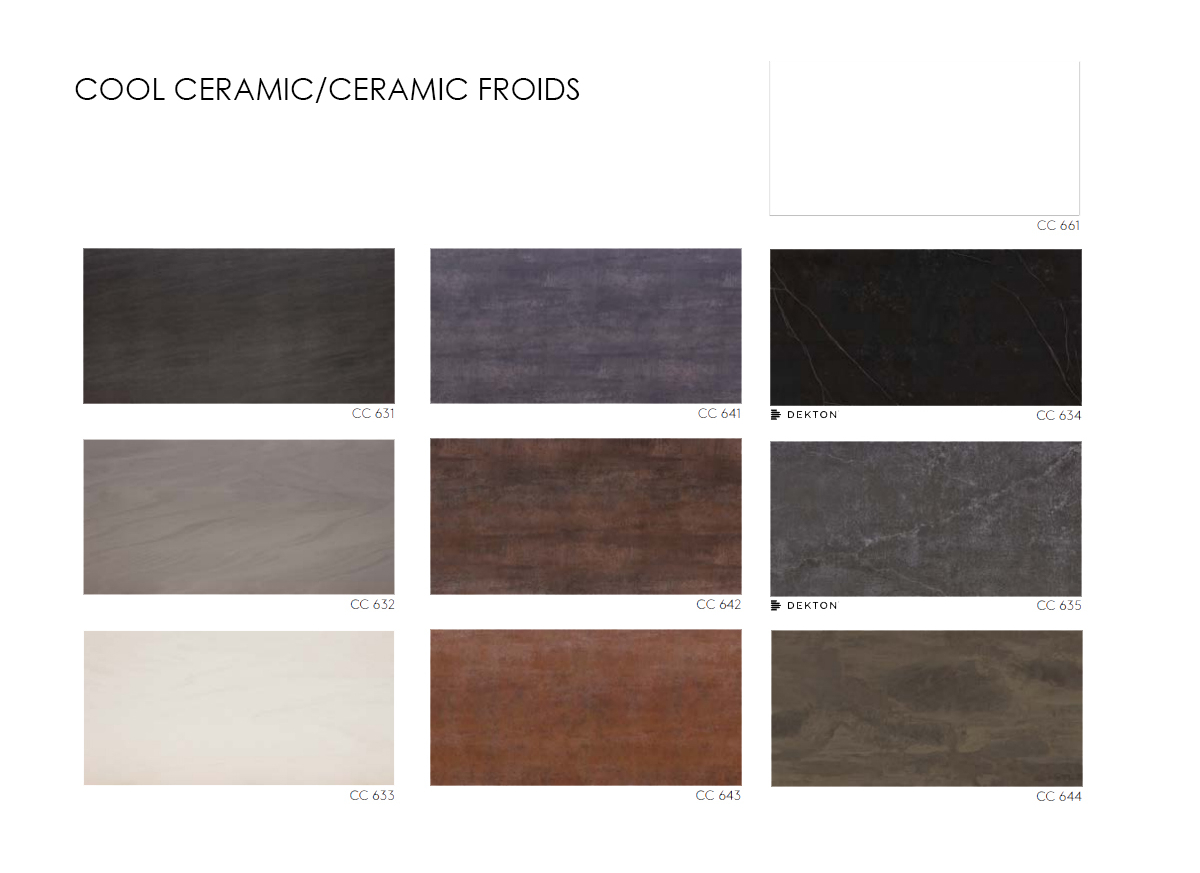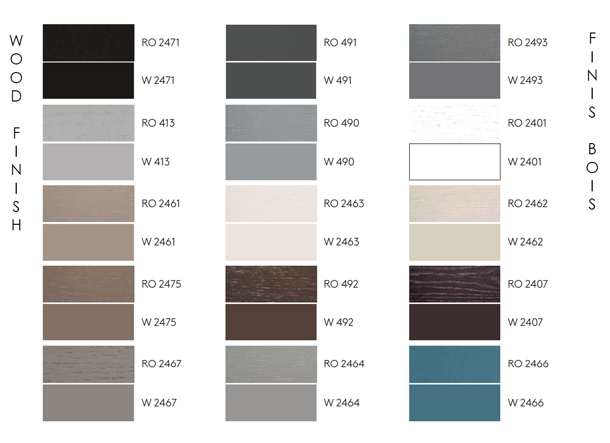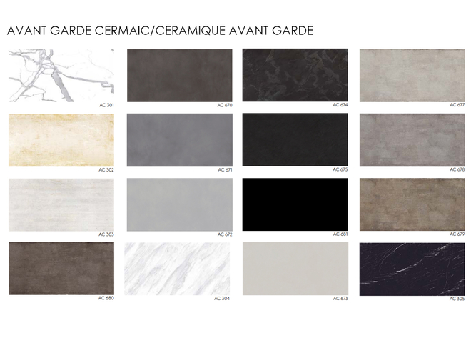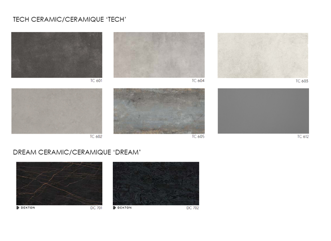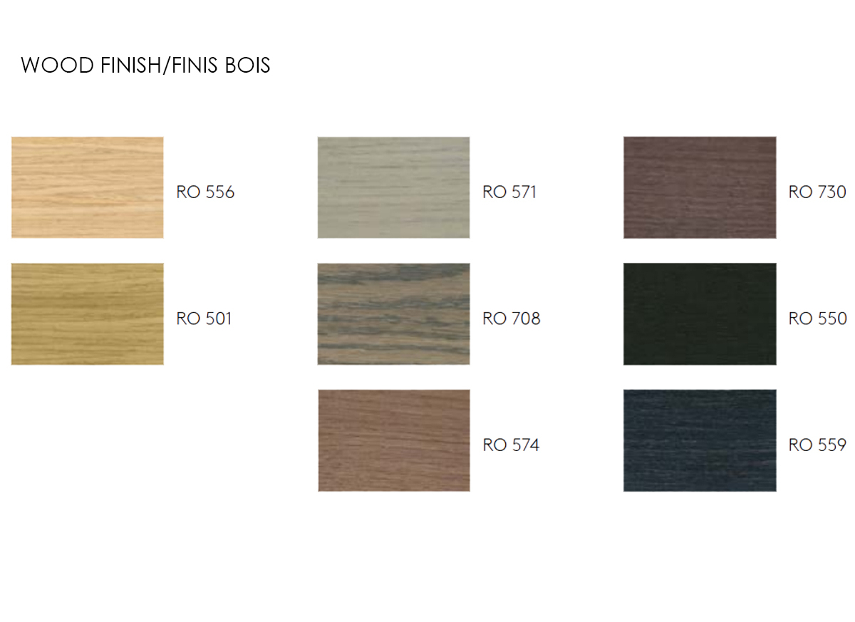 The finish options include ceramic, wood and fluted glass in the entire collection.