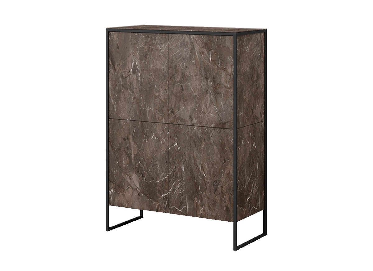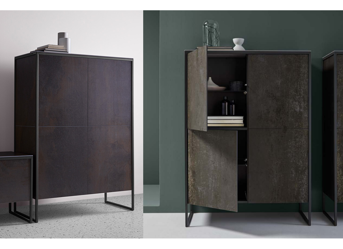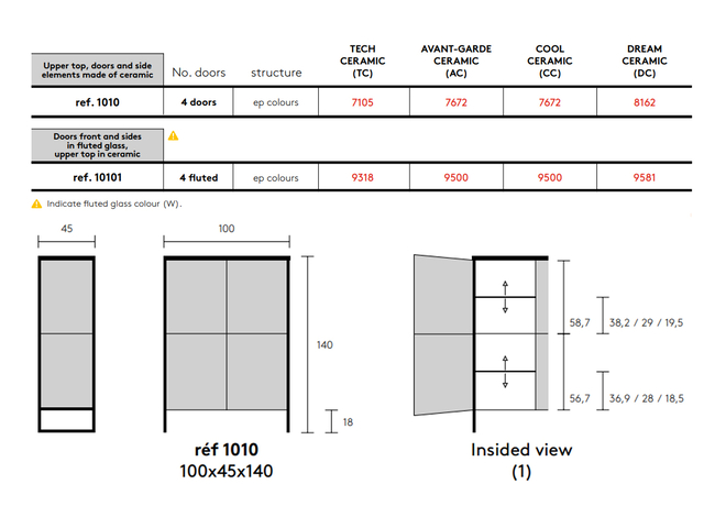 - With fluted glass: doors front and sides in glass, upper top in ceramic.