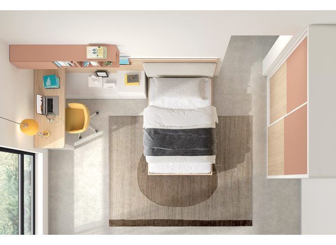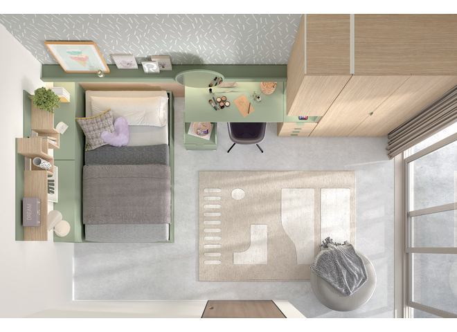 L'adolescent doit avoir son propre espace de travail dans sa chambre d'adolescent. Vous devrez l'équiper correctement pour que l'adolescent puisse passer beaucoup de temps sur son ordinateur, ou dans ses livres sans nuire à sa santé. Il est très important de choisir un bureau durable, et une chaise réglable en hauteur, qui encouragera une posture correcte. Pensez à ajouter des étagères au-dessus de la table et à les remplir de livres dont votre adolescent aura le plus besoin, placez les étagères à portée de main dans la chambre de l'adolescent. Aussi, n'oubliez pas que l'éclairage est important, donc la table doit être placée près de la fenêtre, et une lampe de table doit être ajoutée. Votre adolescent a besoin de se sentir à l'aise dans sa chambre d'adolescent.