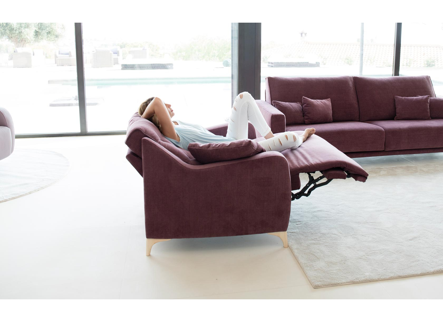 Bonne is the perfect armchair to combine with model Boston, as they share their natural lines and curves and their calmed design. However, Bonne is not a conventional recliner; we have succeeded in raising comfort to infinity, thanks to its new headrest adjustable both in height and inclination which adapts to everyone regardless of height or complexion, and to its high resting position which favours a good resting heart position.