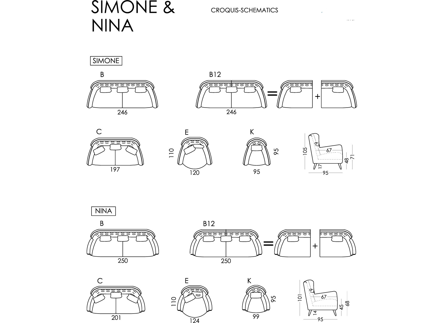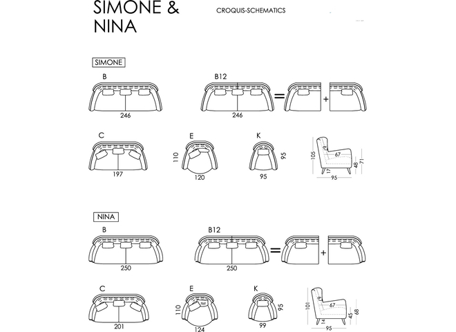 Simone has a more daring design and Nina has a more conventional style, but both share a high back that offers an exceptionally comfortable upright sitting.