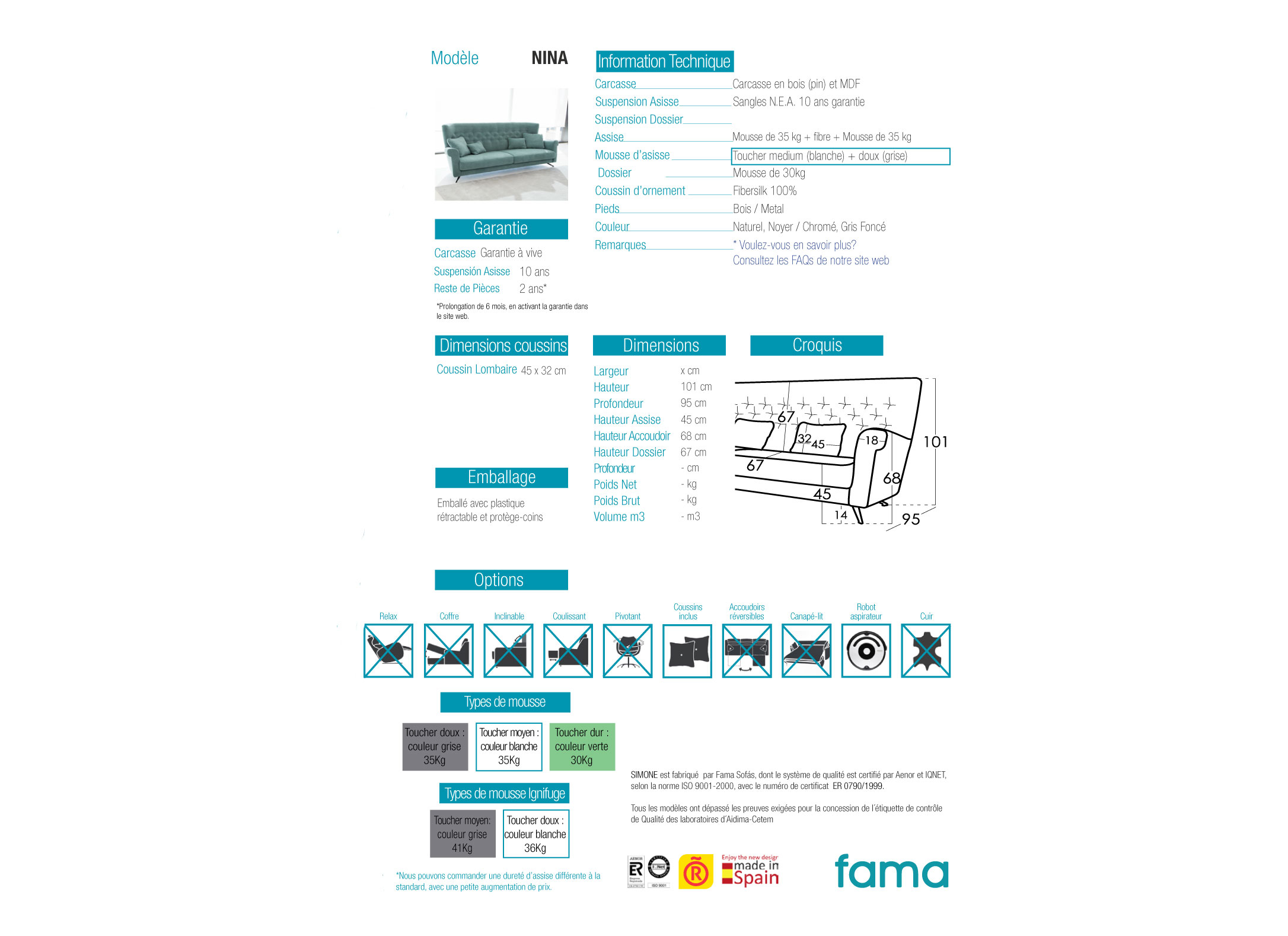 Inspired by the sofas of the 70s with diamond-shaped buttoned backs, Nina and Simone are destined to become two new classics in the Fama catalogue.