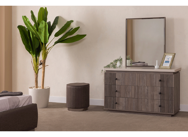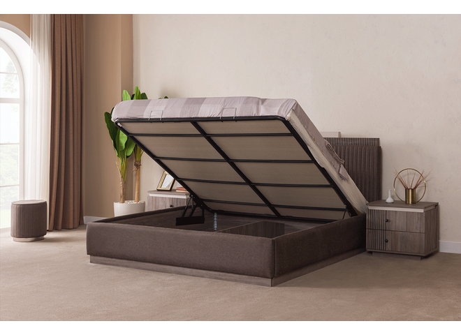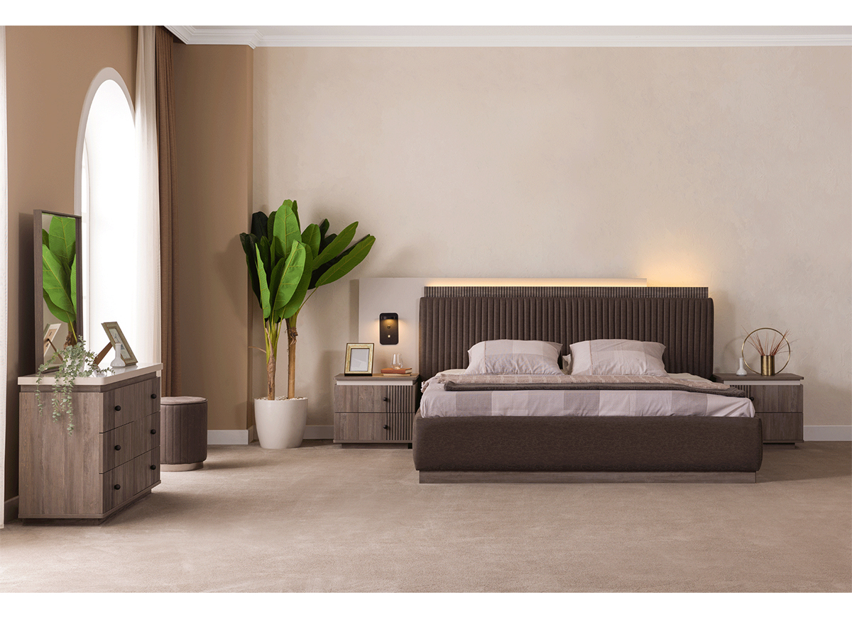 Welcome to the "Elvis" Storage bedroom, a haven of modern opulence and refined style. Bathed in rich, chocolate brown tones, this bedroom exudes sophistication while maintaining a contemporary edge.